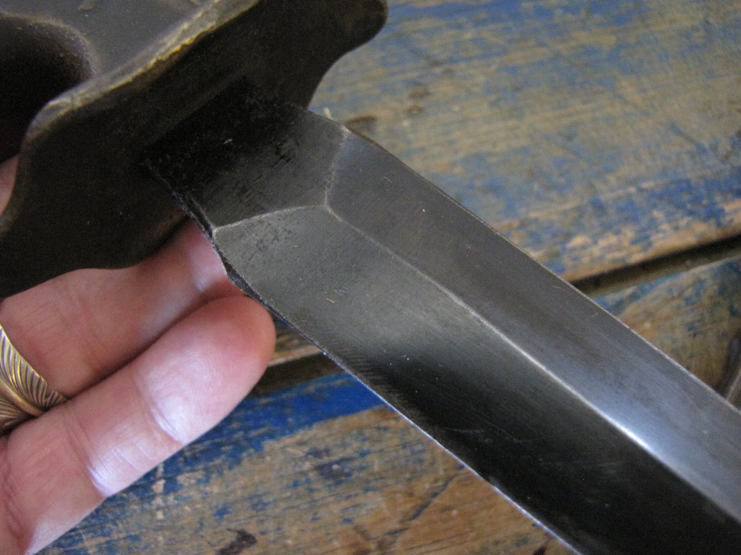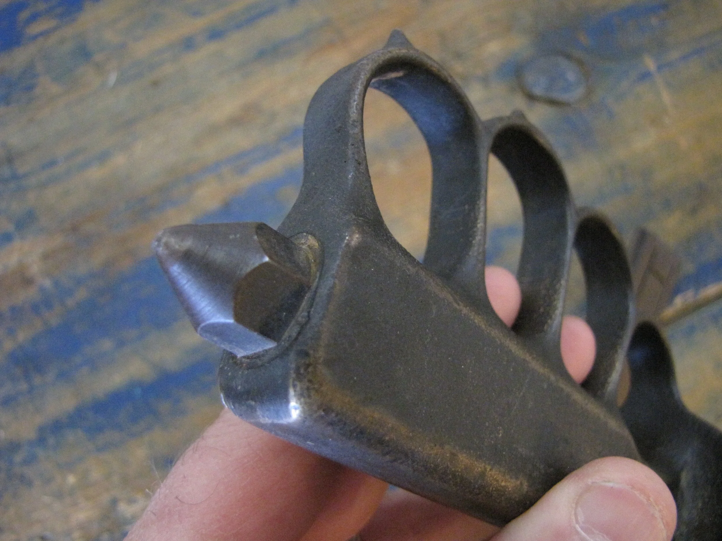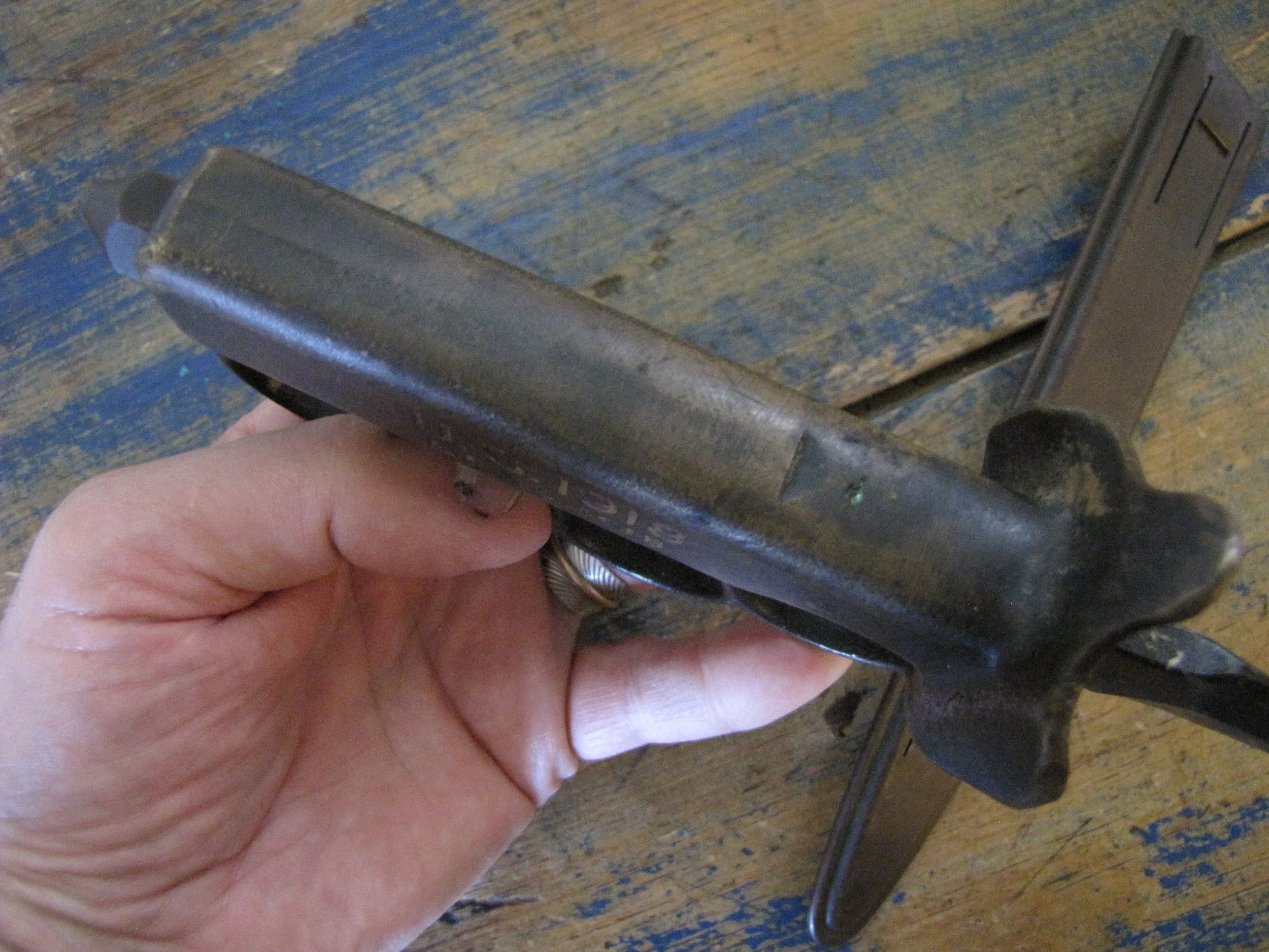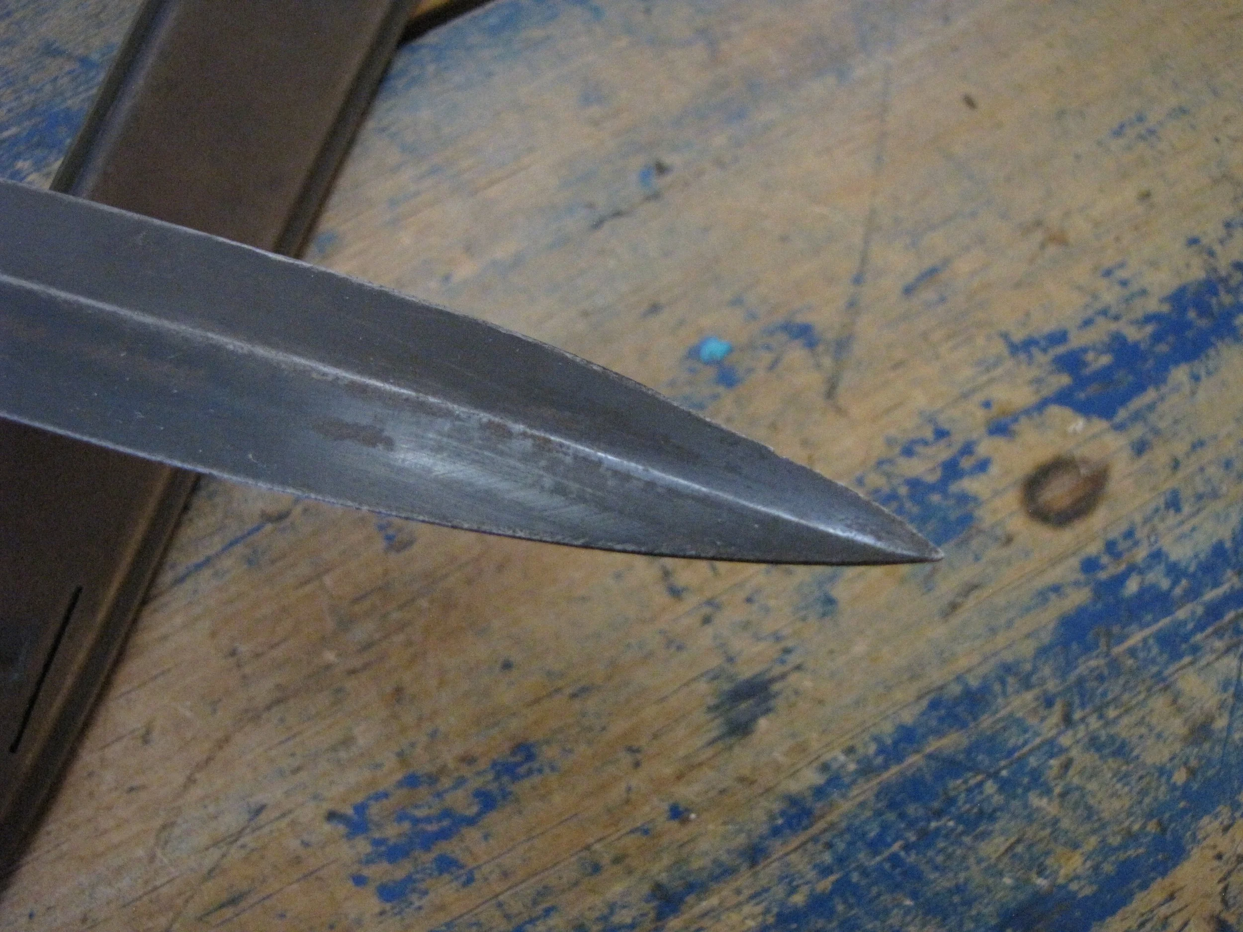 An excellent example of the classic M1918 fighting knife. In wonderful condition and complete with scabbard. The blade retaining most of its original finish. Overall length 11 1/2” with a blade of 6 7/8”. The flared guards have been slightly modified by bending them a little, this was a popular modification during WWII especially amongst Airborne troops in order to wear the knife closer to the body.