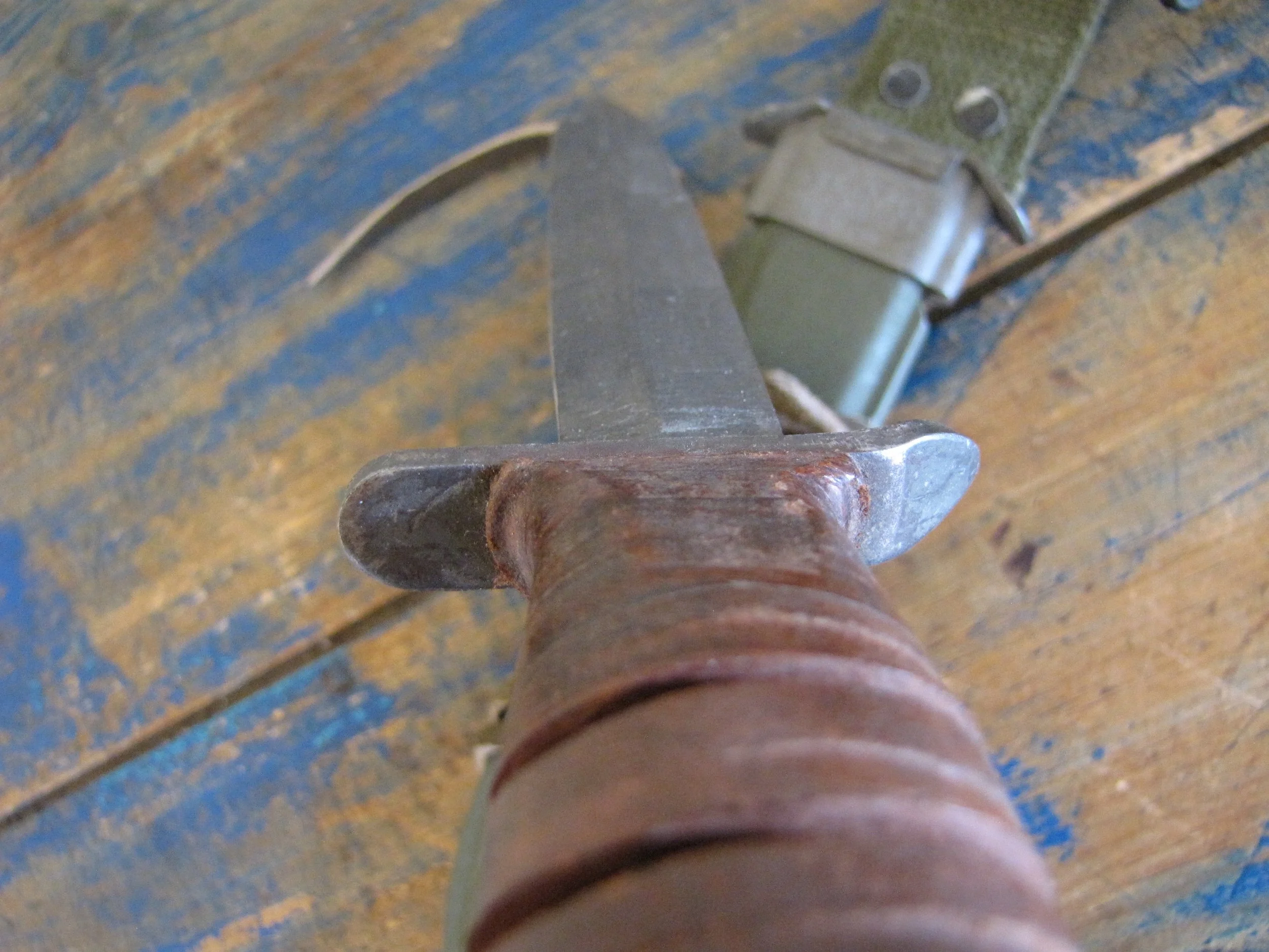 A really great example only showing ‘very’ gentle use. This solid, tight and honest original M3 has an overall length of 11 5/8” with a blade of 6 3/4”, retaining most of its original parkerized finish and showing very minimal signs of use. The grip is solid and in great condition, retaining a lot of original polish and shine to the leather. The cross-guard is correctly marked ‘US M-3 UTICA’. The excellent M3 knife comes with its original M8 scabbard by BMCO, also in excellent condition and with a leather thong.