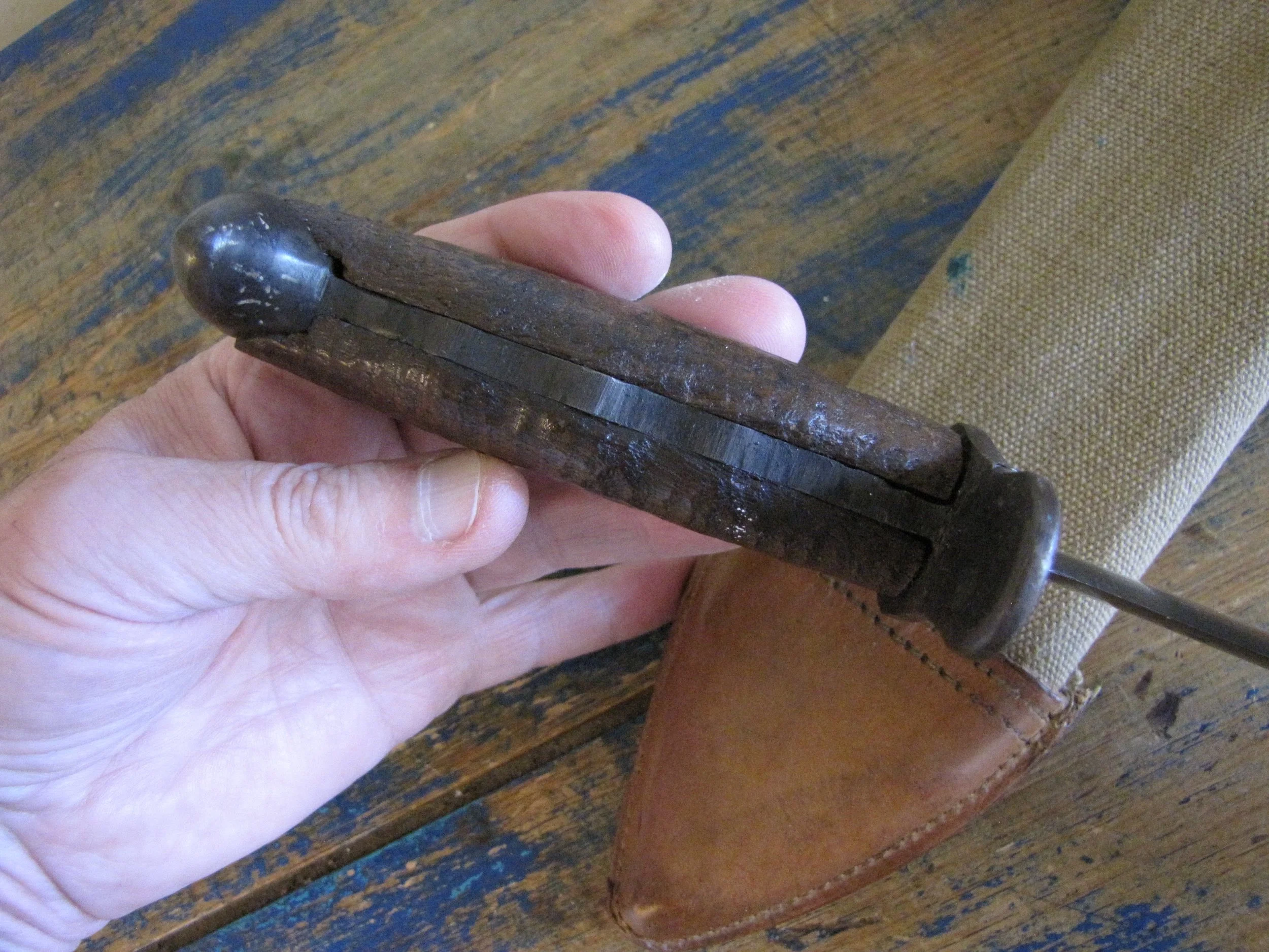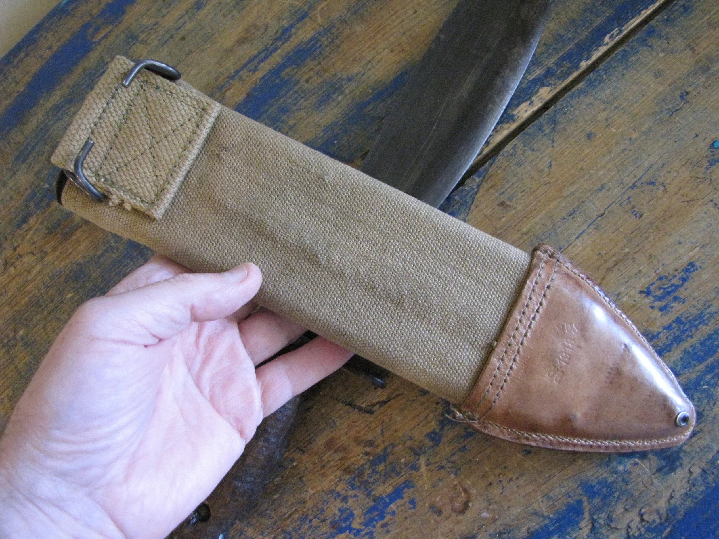 A good, honest example of he US WWI Bolo. Showing some use and with a crack to the crossguard. Complete with sheath. All the usual markings on both the knife and sheath. Please note the increased ‘international’ shipping costs due to the weight, the domestic (US) shipping cost of $25 will stay the same.