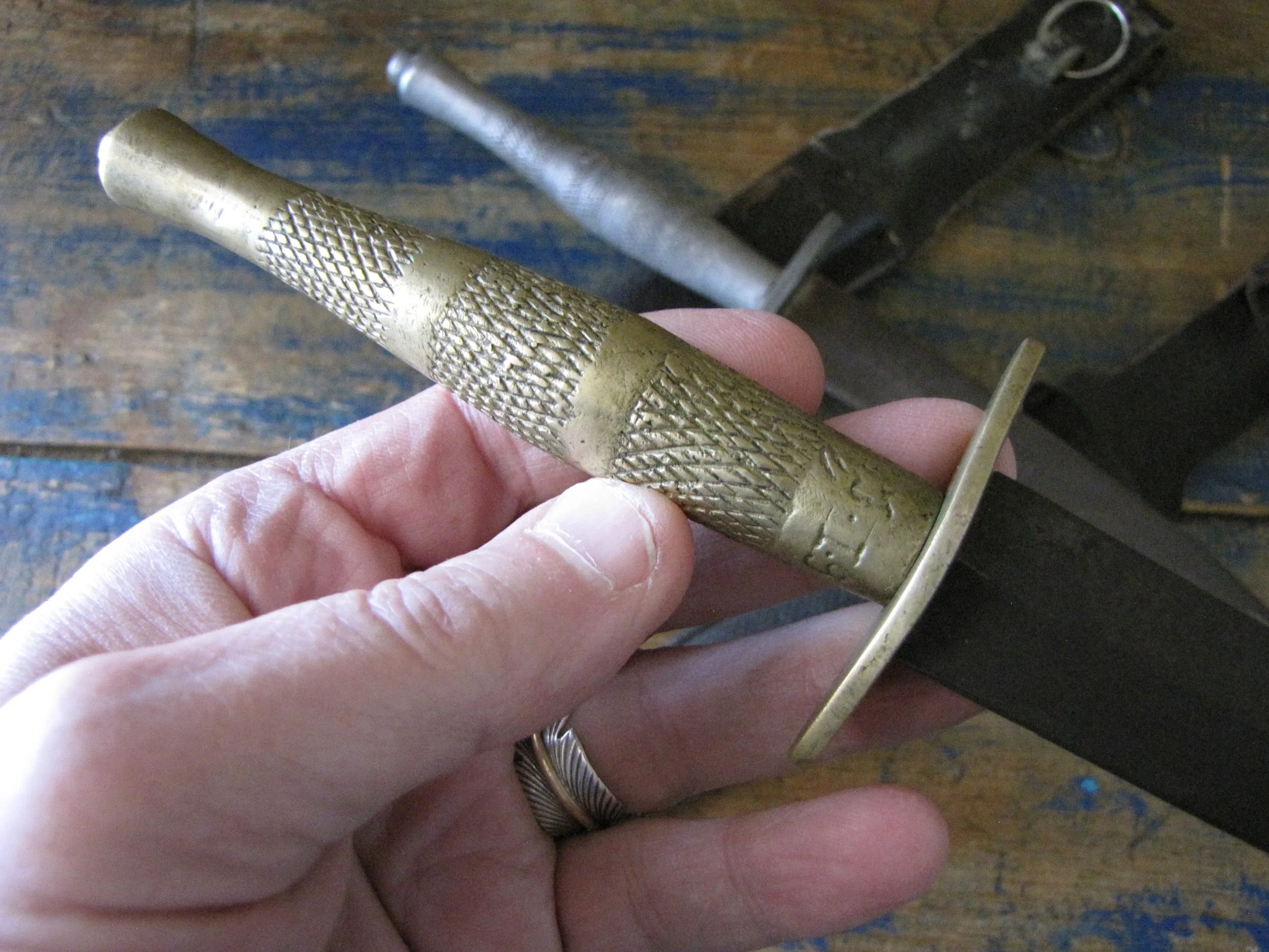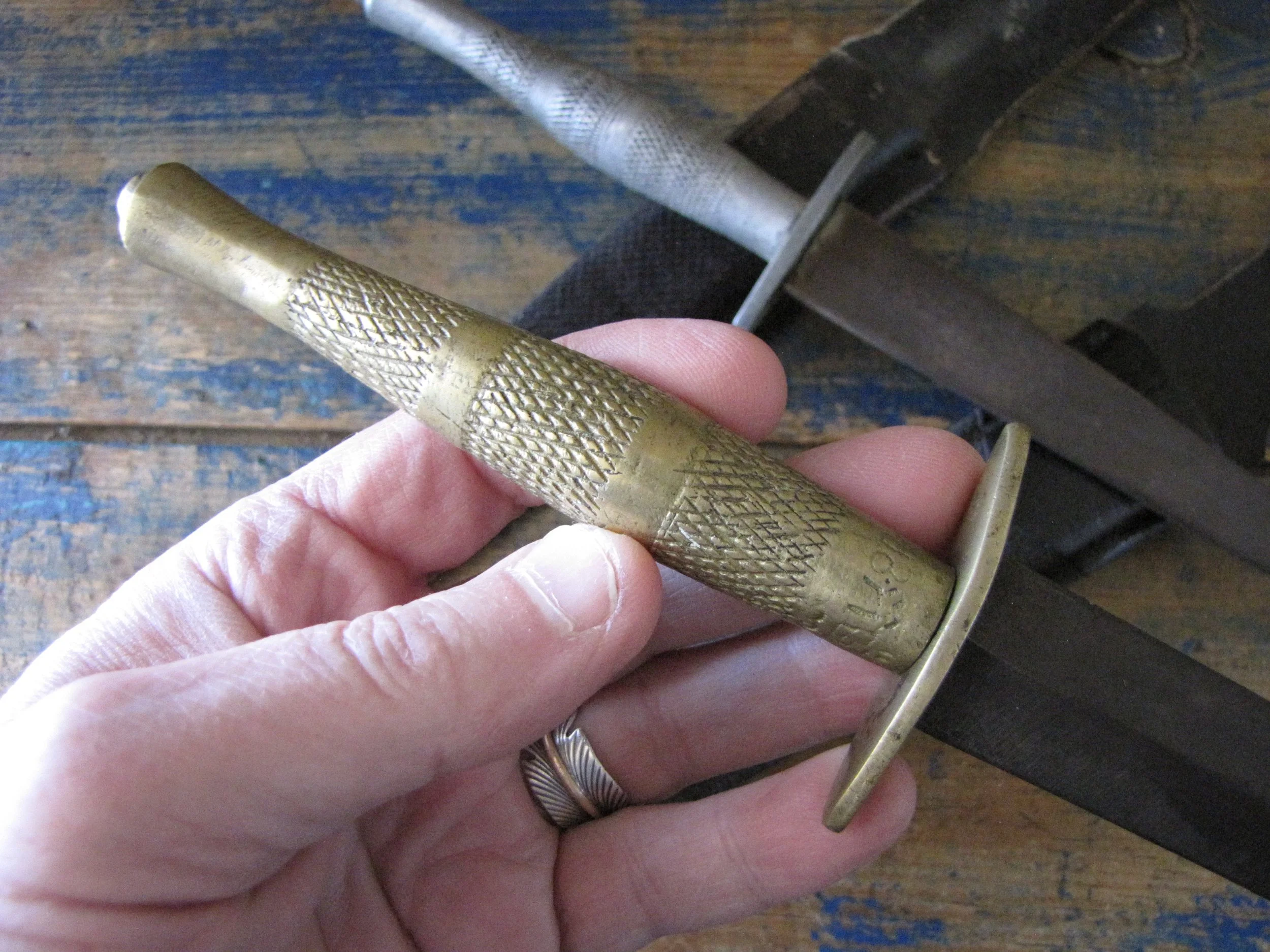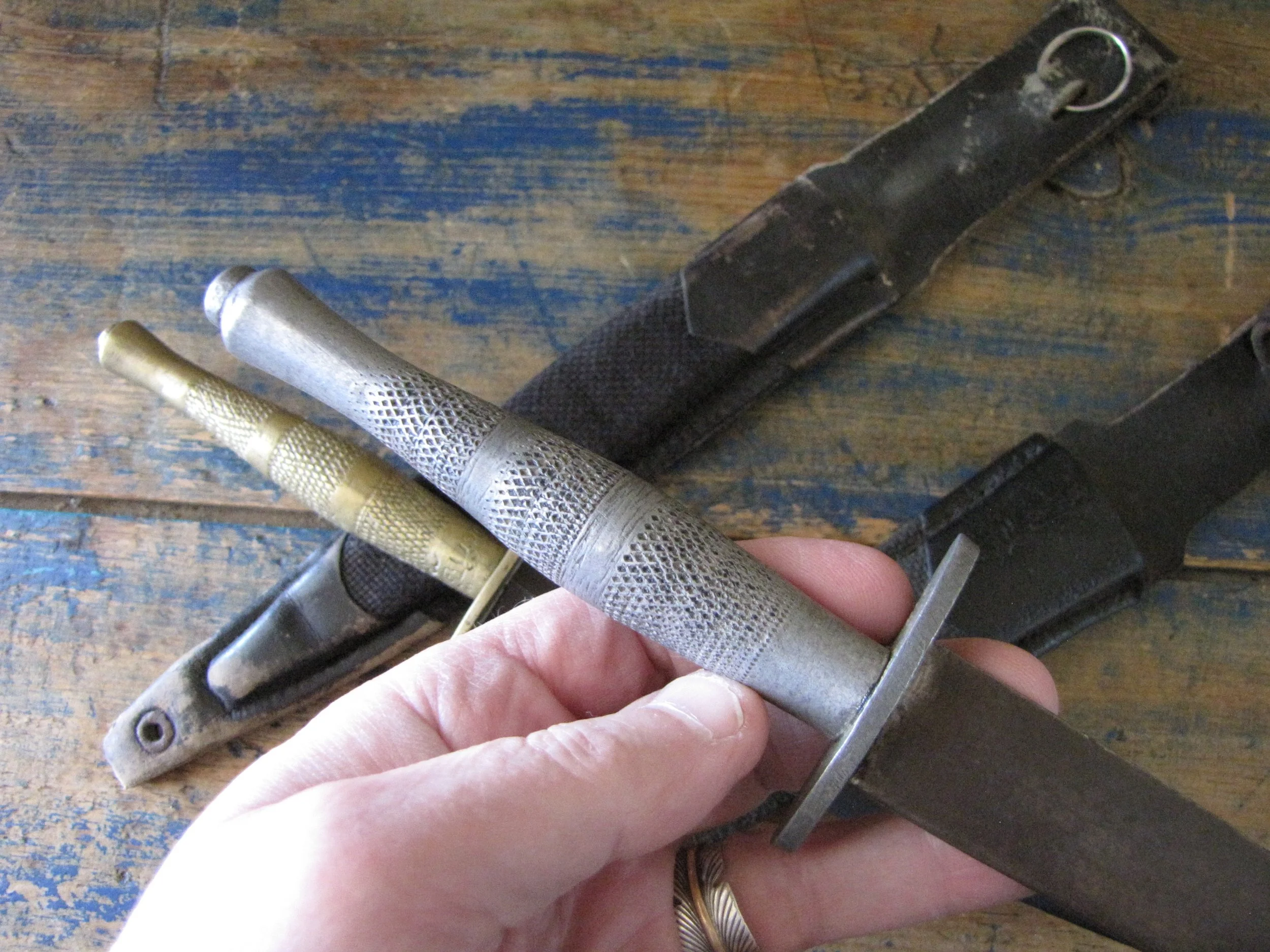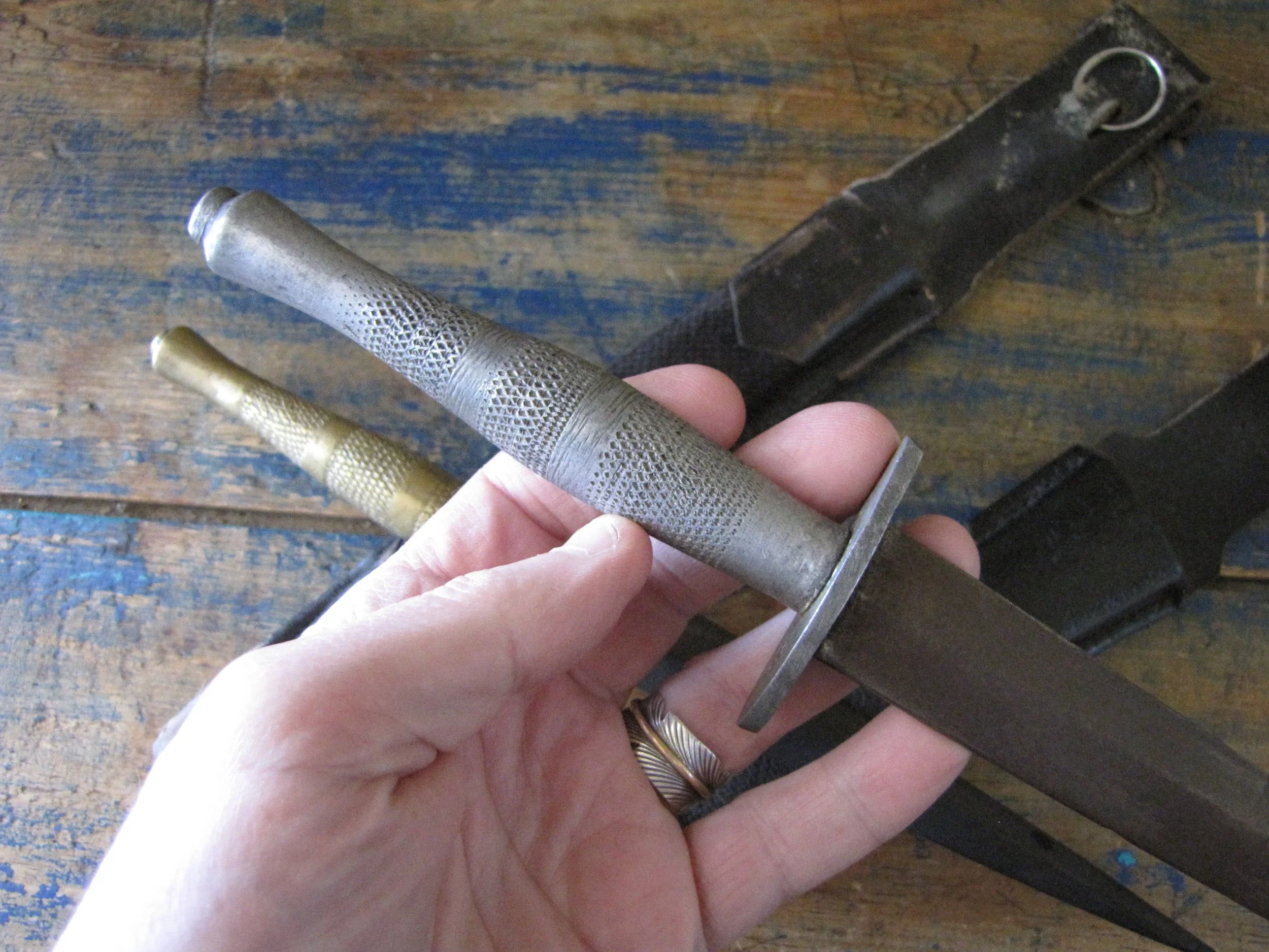 Sold as a pair, two Indonesian F-S knives. Purportedly issued/used by the Indonesian Special Forces KOPASSUS (1952 onwards) they come in a variety of different versions and are usually quite low quality construction. Nevertheless, they represent an interesting and unusual variation of the F-S. Complete with their correct sheaths. One having a brass grip, the other alloy.