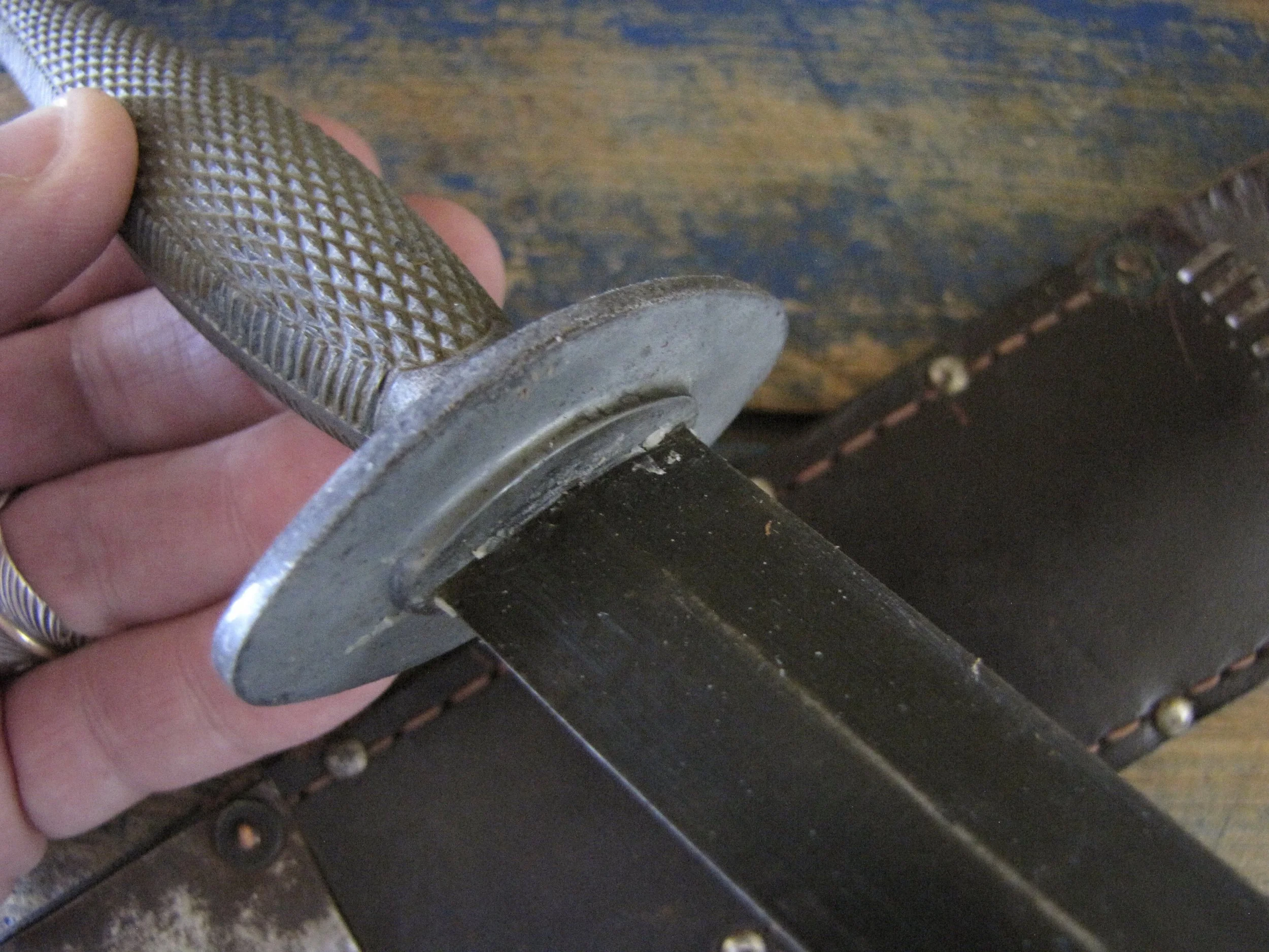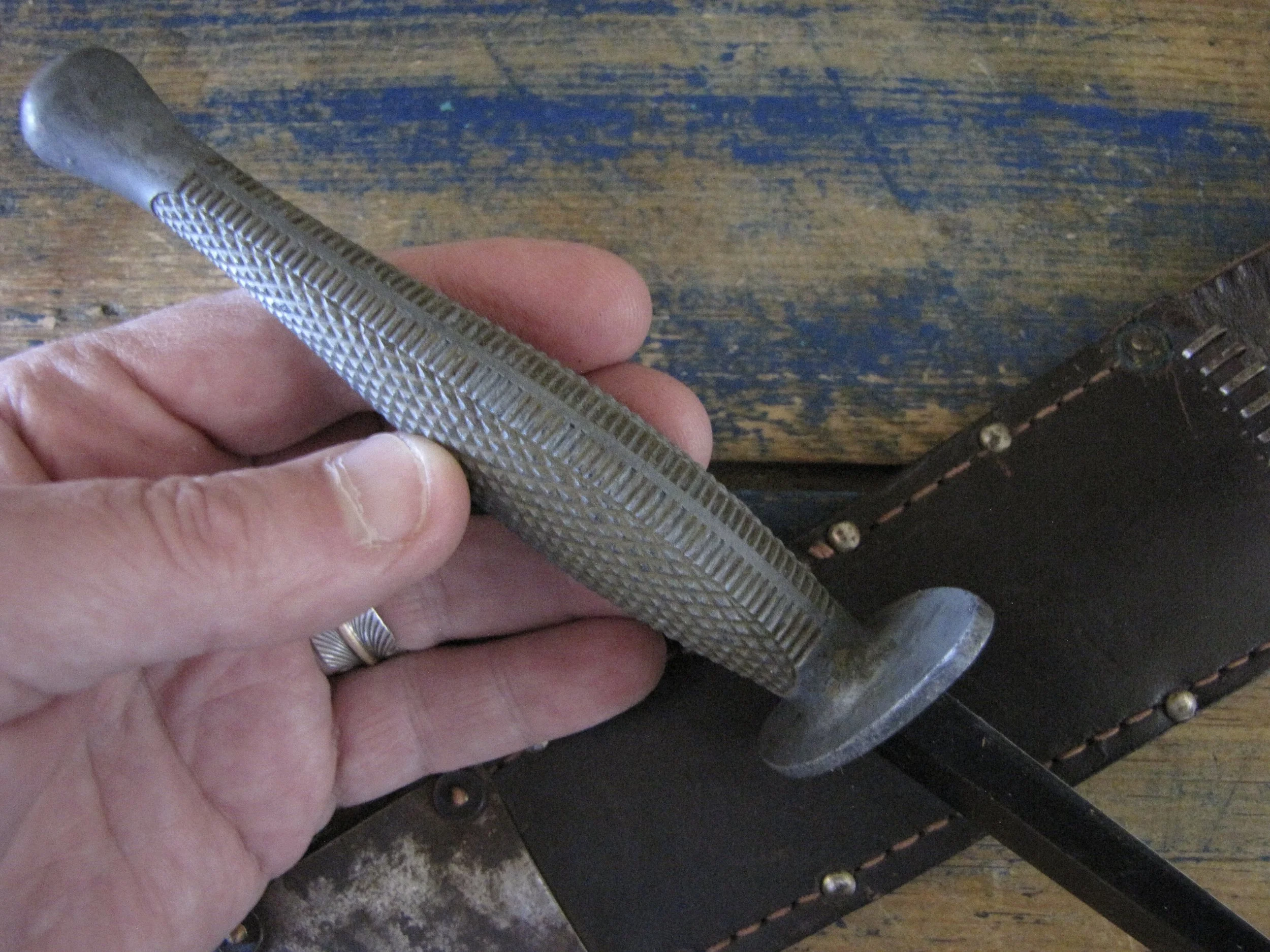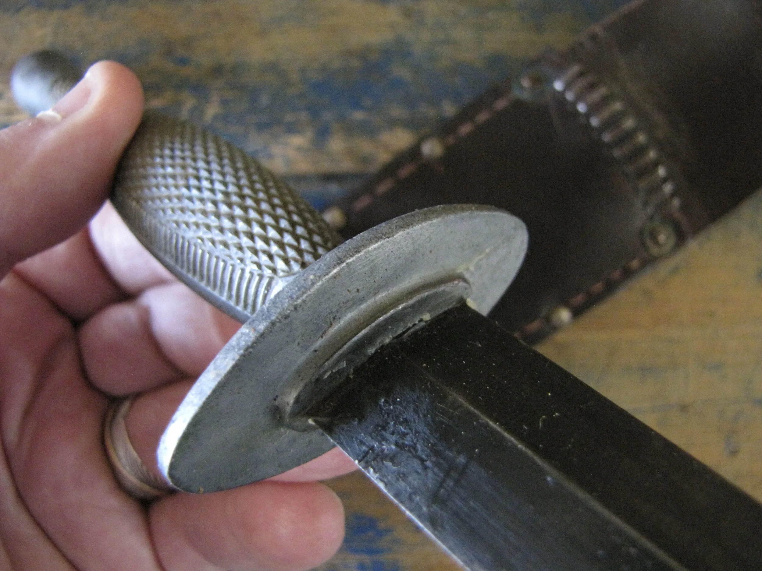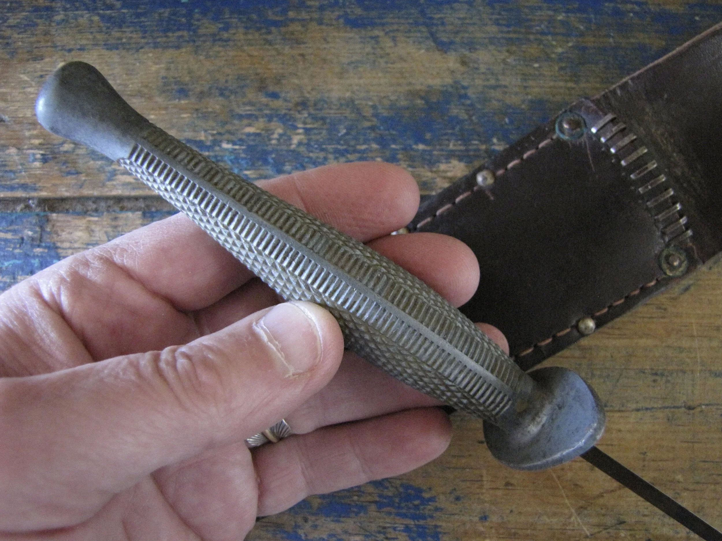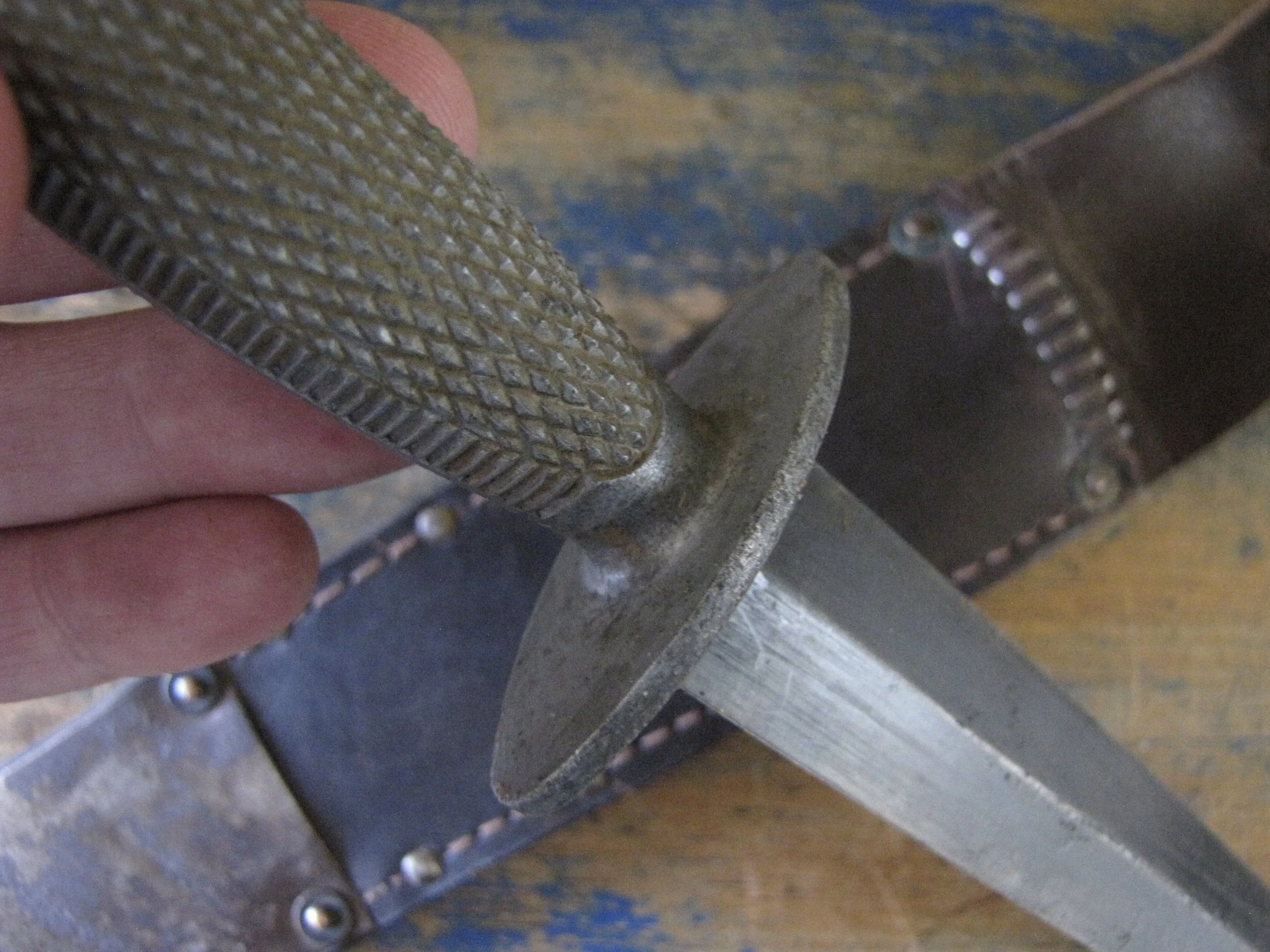 Without doubt one of true rarities within F-S variant collecting specifically and WWII fighting knife collecting in general. Made by the US company Camillus and to the same design as the famed U.S. Marine Raider Stiletto, a small batch was supplied to he Canadian 1st Parachute Battalion, the design differed slightly, in that there were no etchings applied to the blade and an overall black finish was applied. This wonderful example, has clearly seen use but remains in fabulous condition. The blade appears full length at 7 1/8”, showing some small areas of old corrosion but retaining much of the blades dark finish. The hilt has little to no original dark finish remaining but importantly has no noticeable cracks or issues that so often plague these case grips, so solid and strong. Complete with its original and correct sheath. For the US military knife collector as well as the F-S collector, it’s hard to think of many examples that are this hard to find. Don’t miss out on addition this beauty to your collection, who knows when you will see another example.