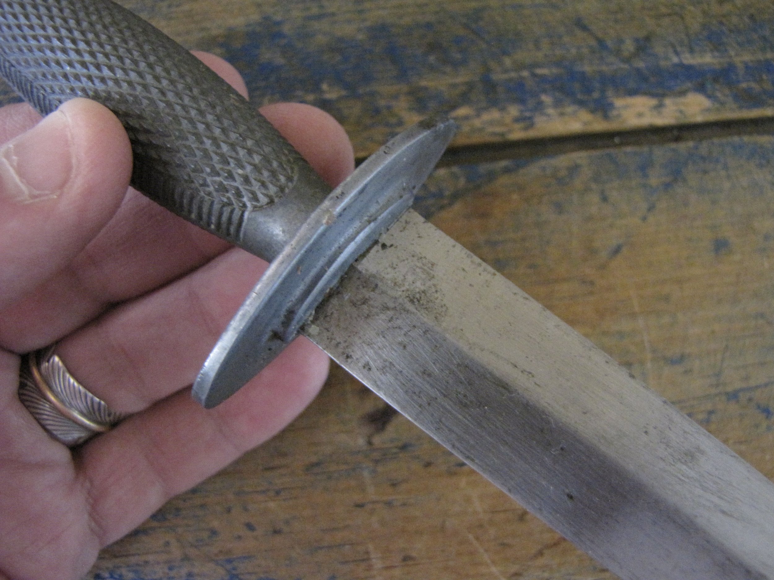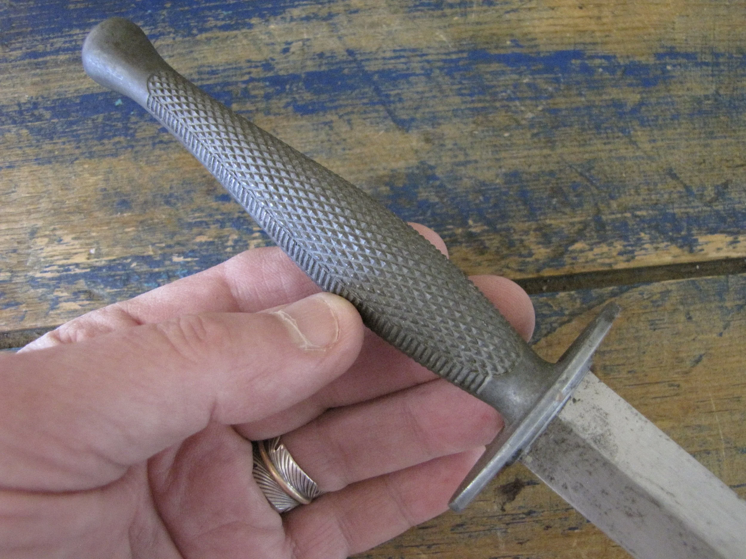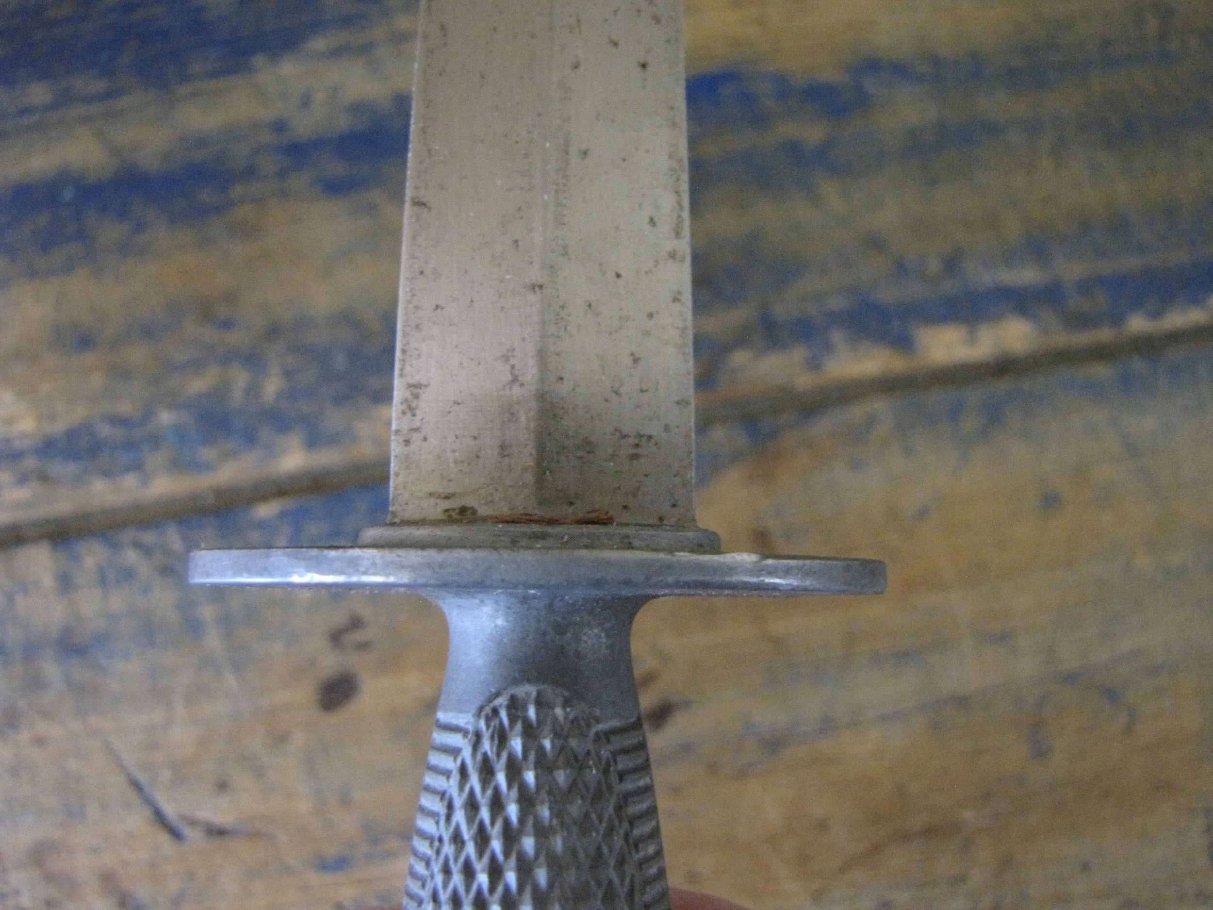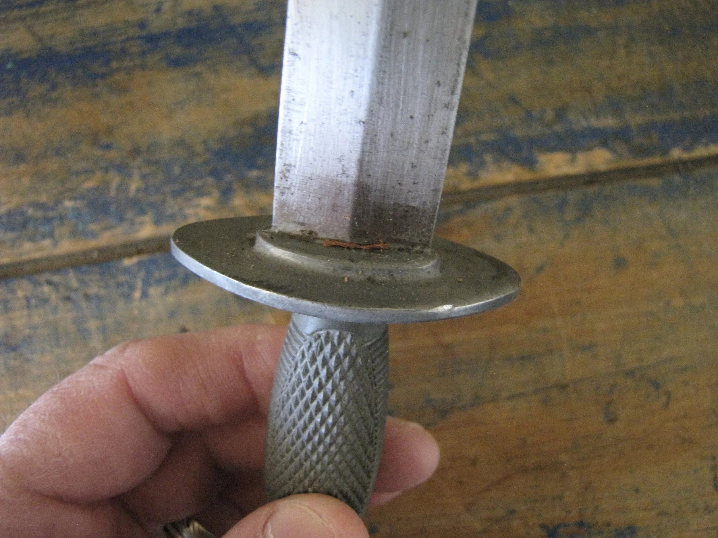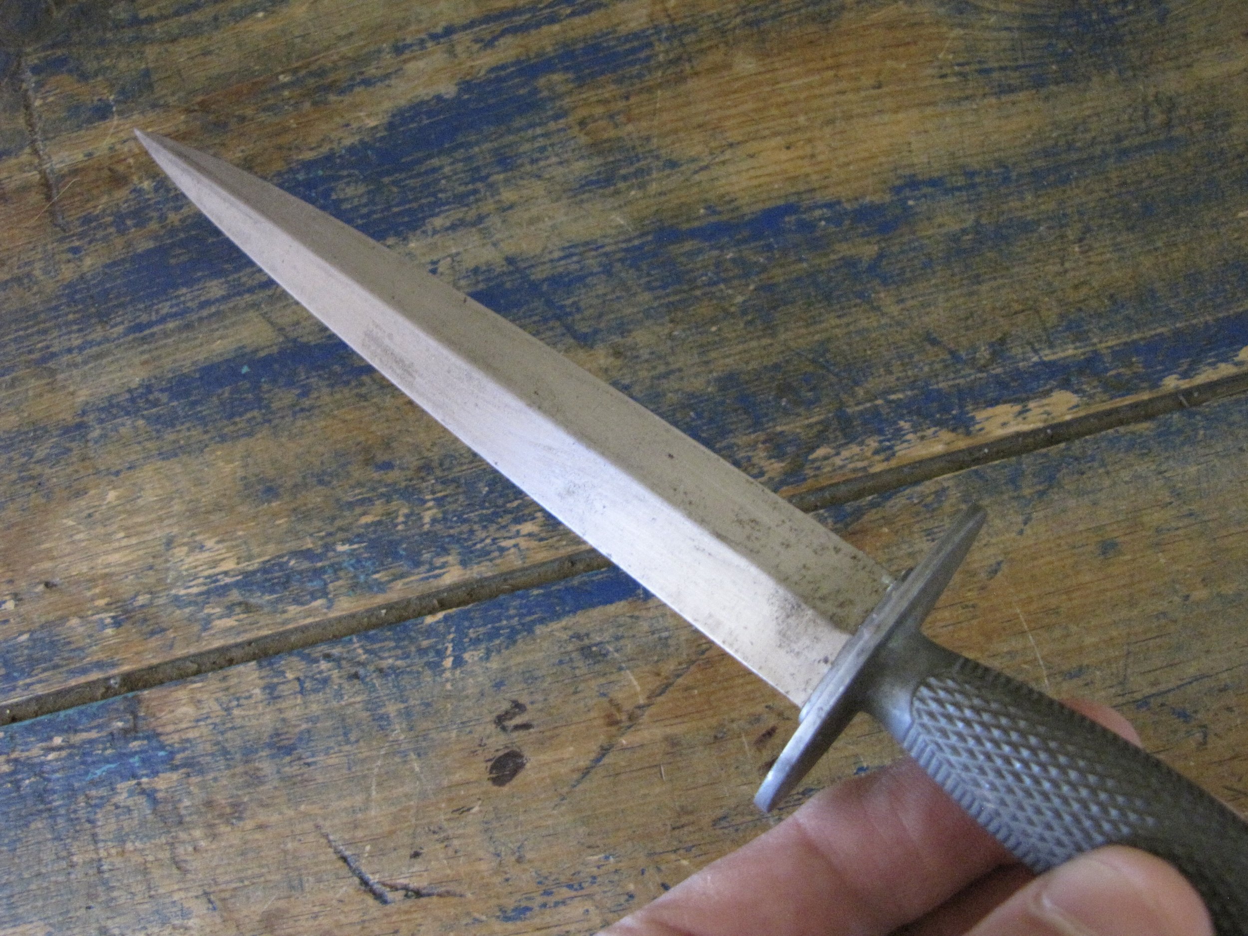 A really nice example of the classic US Marine Raider Stiletto by Camillus Cutlery Company. No sheath with this example. As is common, the lightly applied etchings have long worn off the blade. The blade appears around full length at 7 3/16” with a nicely defined tip. Some of these knives suffer from the cast grip crumbling, I see no signs of this and the grip & guard appear robust and strong. There is a small mark on the guard (see photo) that can only be seen from some angles, to my eye it does not look like a crack but just a scratch or mark but I wanted to point this out for full disclosure. Overall the knives shows signs of general use, wear, age and sharpening but remains in really lovely condition, an honest knife with honest signs if being carried and used but not abused.