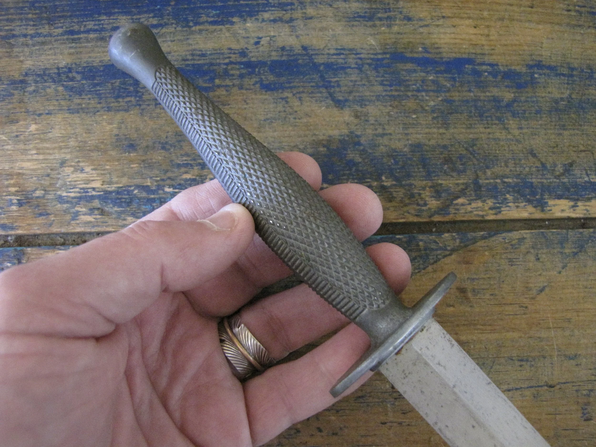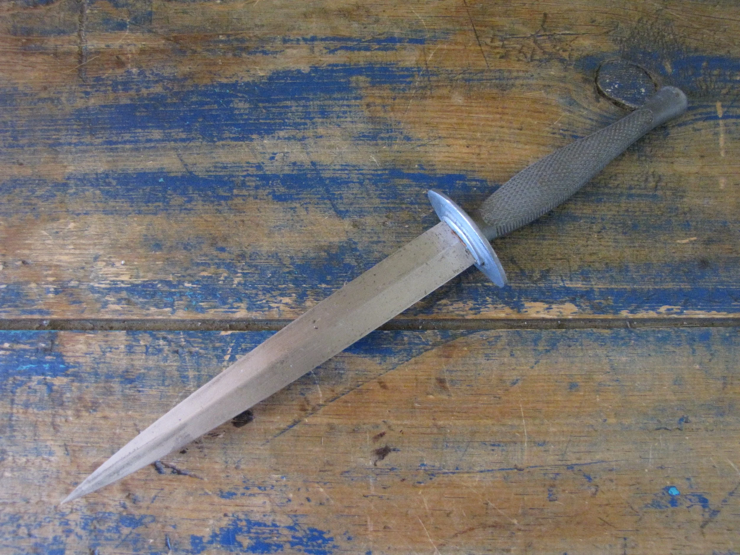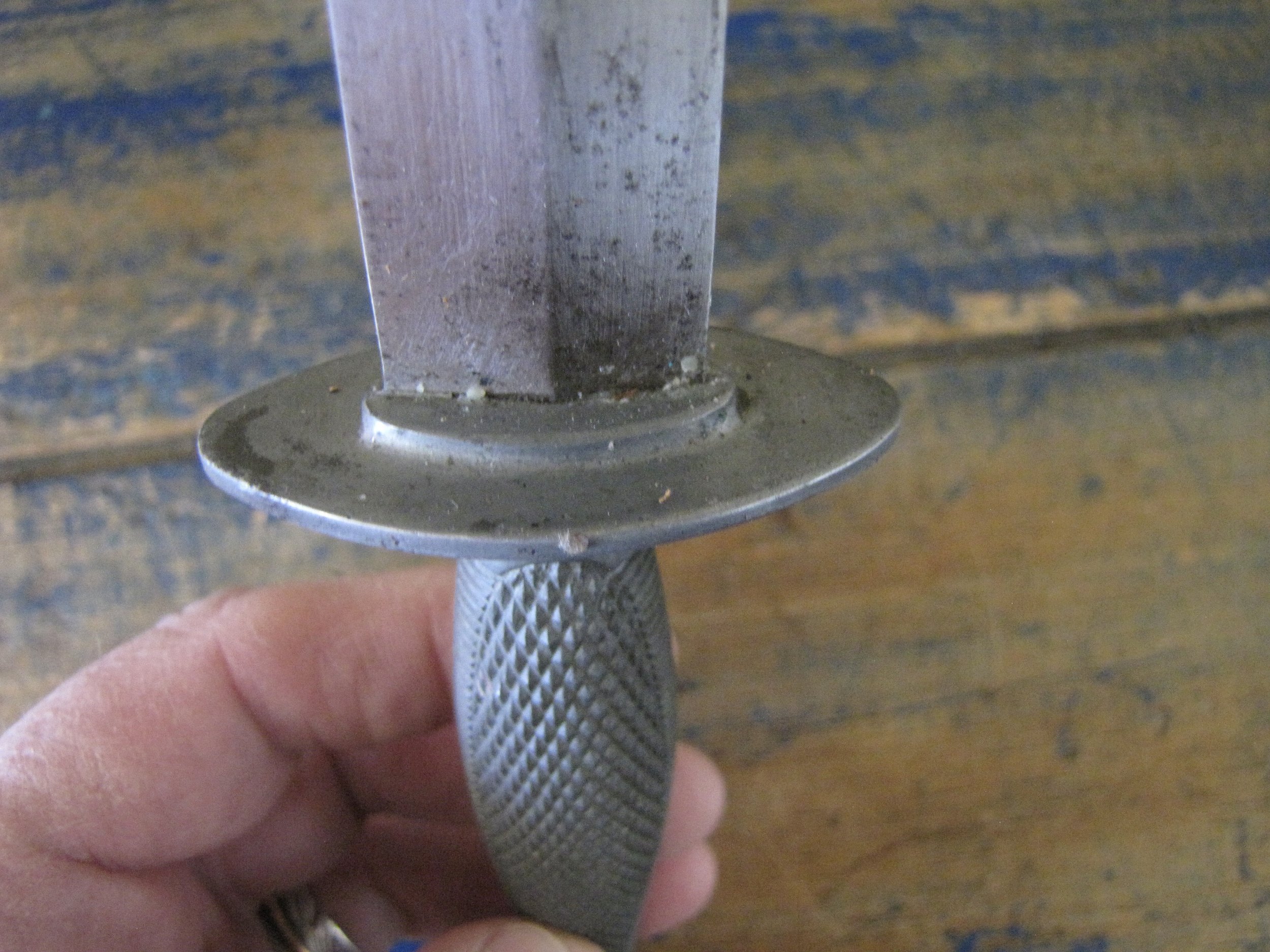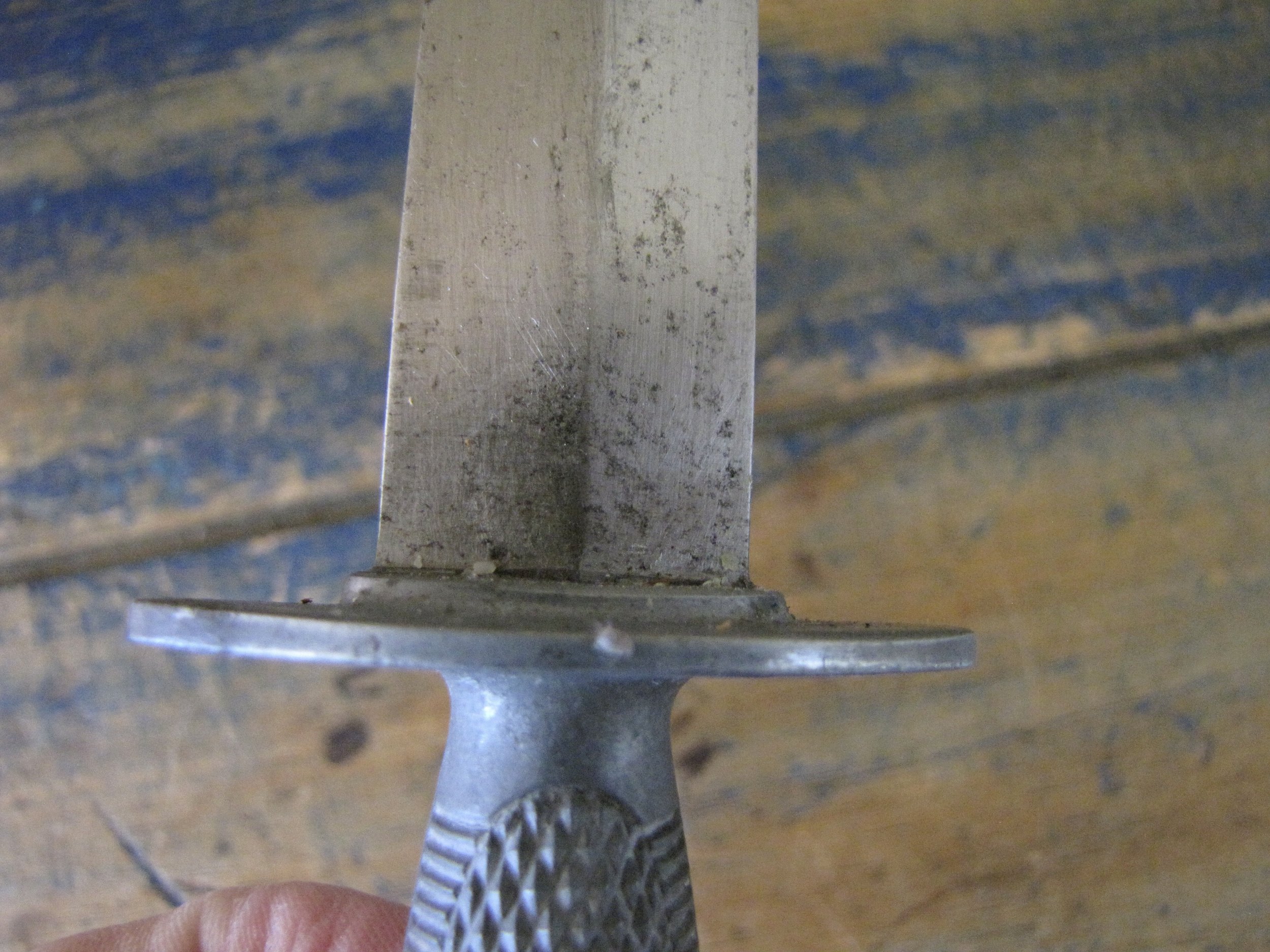 A really nice example of the classic US Marine Raider Stiletto by Camillus Cutlery Company. No sheath with this example. As is common, the lightly applied etchings have long worn off the blade. The blade appears around full length at 7 3/16” with a nicely defined tip. Some of these knives suffer from the cast grip crumbling, I see no signs of this and the grip & guard appear robust and strong. There is a small mark on the guard (see photo) that can only be seen from some angles, to my eye it does not look like a crack but just a scratch or mark but I wanted to point this out for full disclosure. Overall the knives shows signs of general use, wear, age and sharpening but remains in really lovely condition, an honest knife with honest signs if being carried and used but not abused.