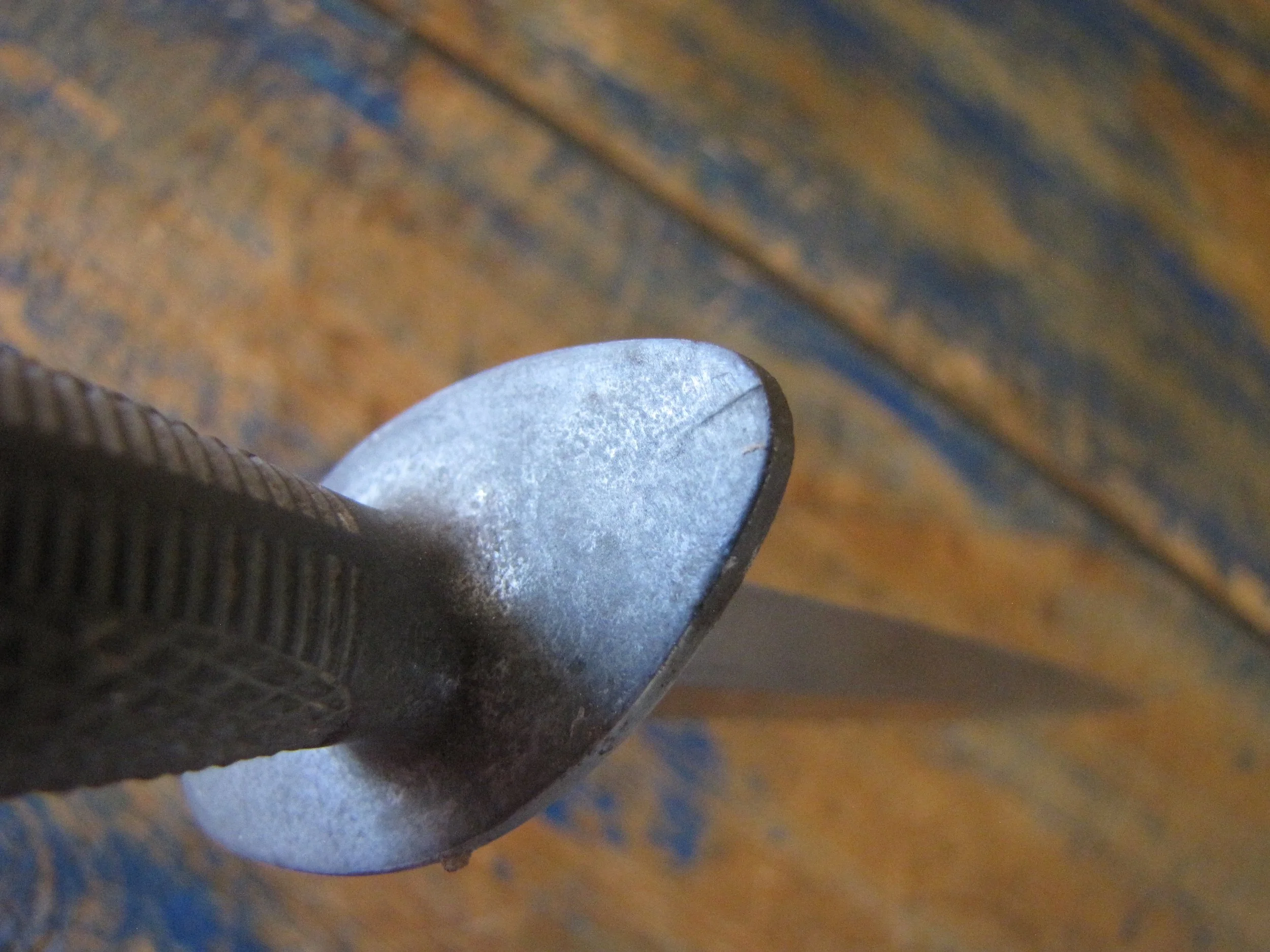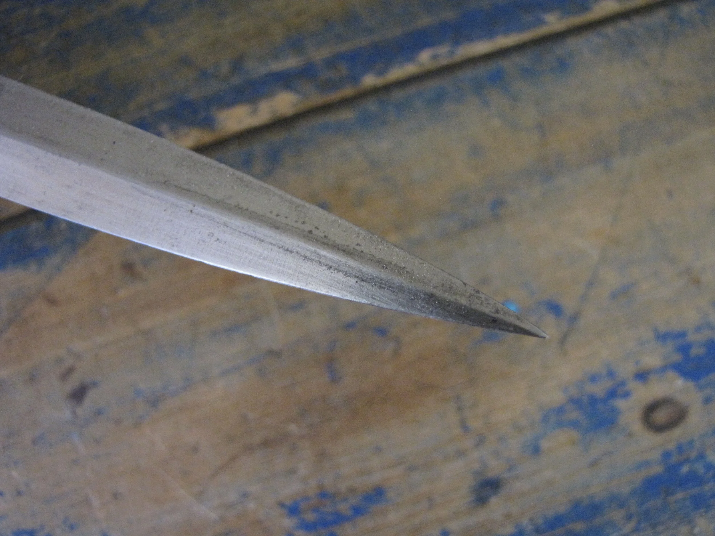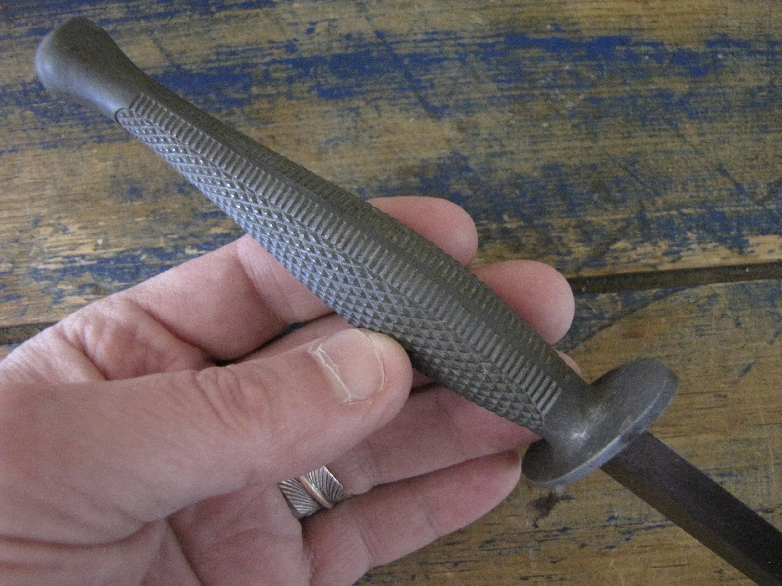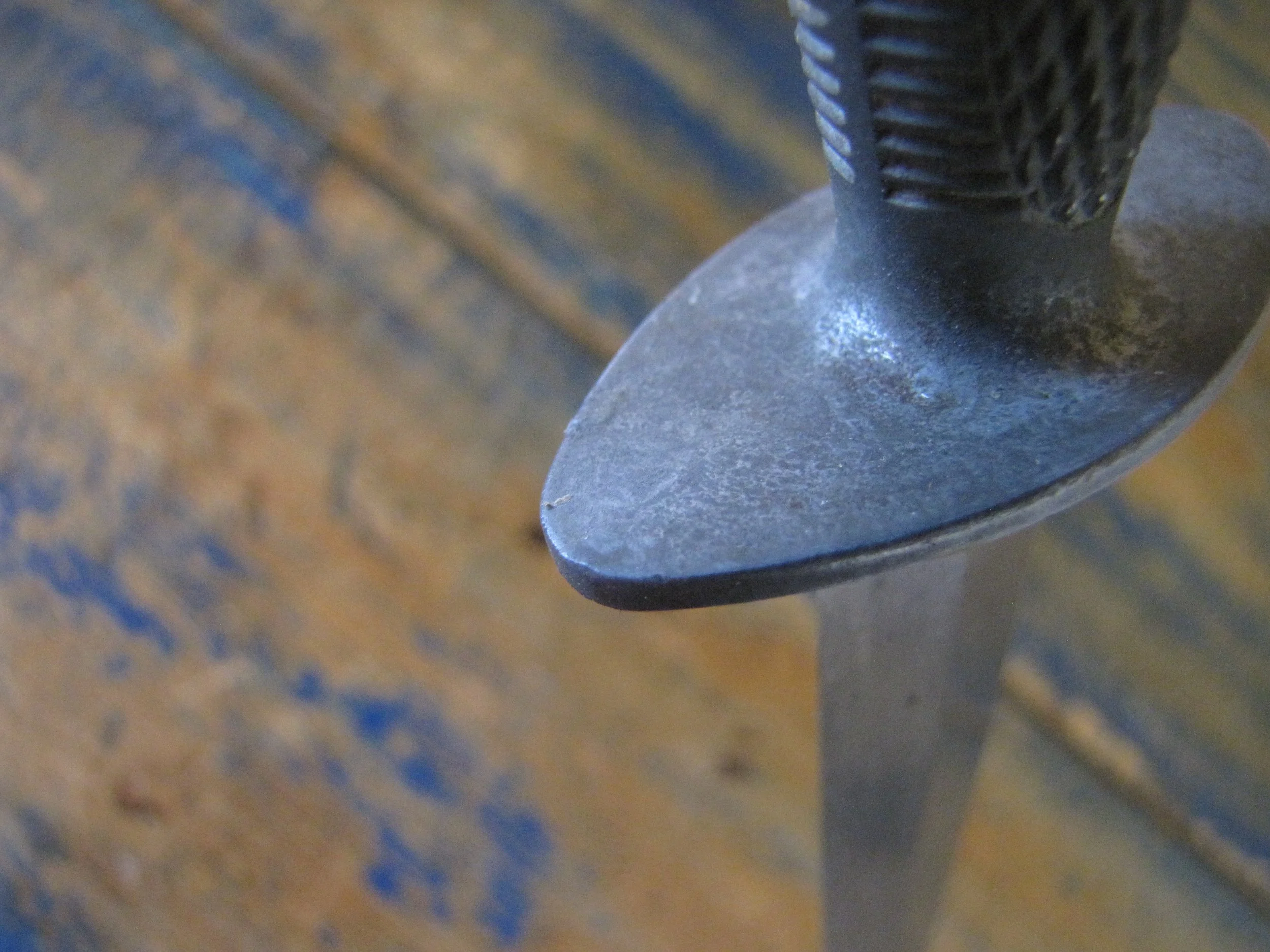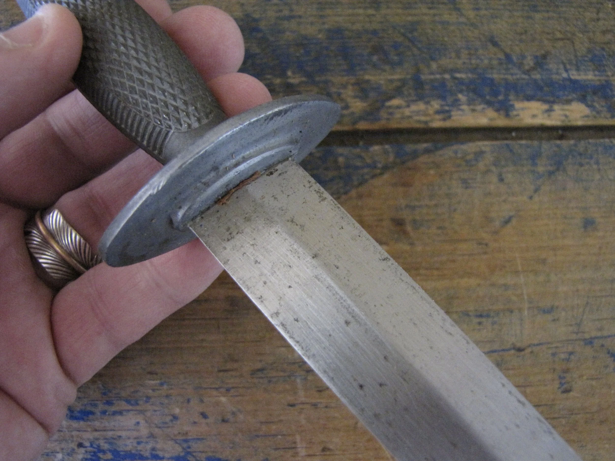 A really nice example of the classic US Marine Raider Stiletto by Camillus Cutlery Company. No sheath with this example. As is common, the lightly applied etchings have long worn off the blade. The blade appears around full length at 7 3/16” with a nicely defined tip. Some of these knives suffer from the cast grip crumbling, I see no signs of this and the grip & guard appear robust and strong. There is a small mark on the guard (see photo) that can only be seen from some angles, to my eye it does not look like a crack but just a scratch or mark but I wanted to point this out for full disclosure. Overall the knives shows signs of general use, wear, age and sharpening but remains in really lovely condition, an honest knife with honest signs if being carried and used but not abused.