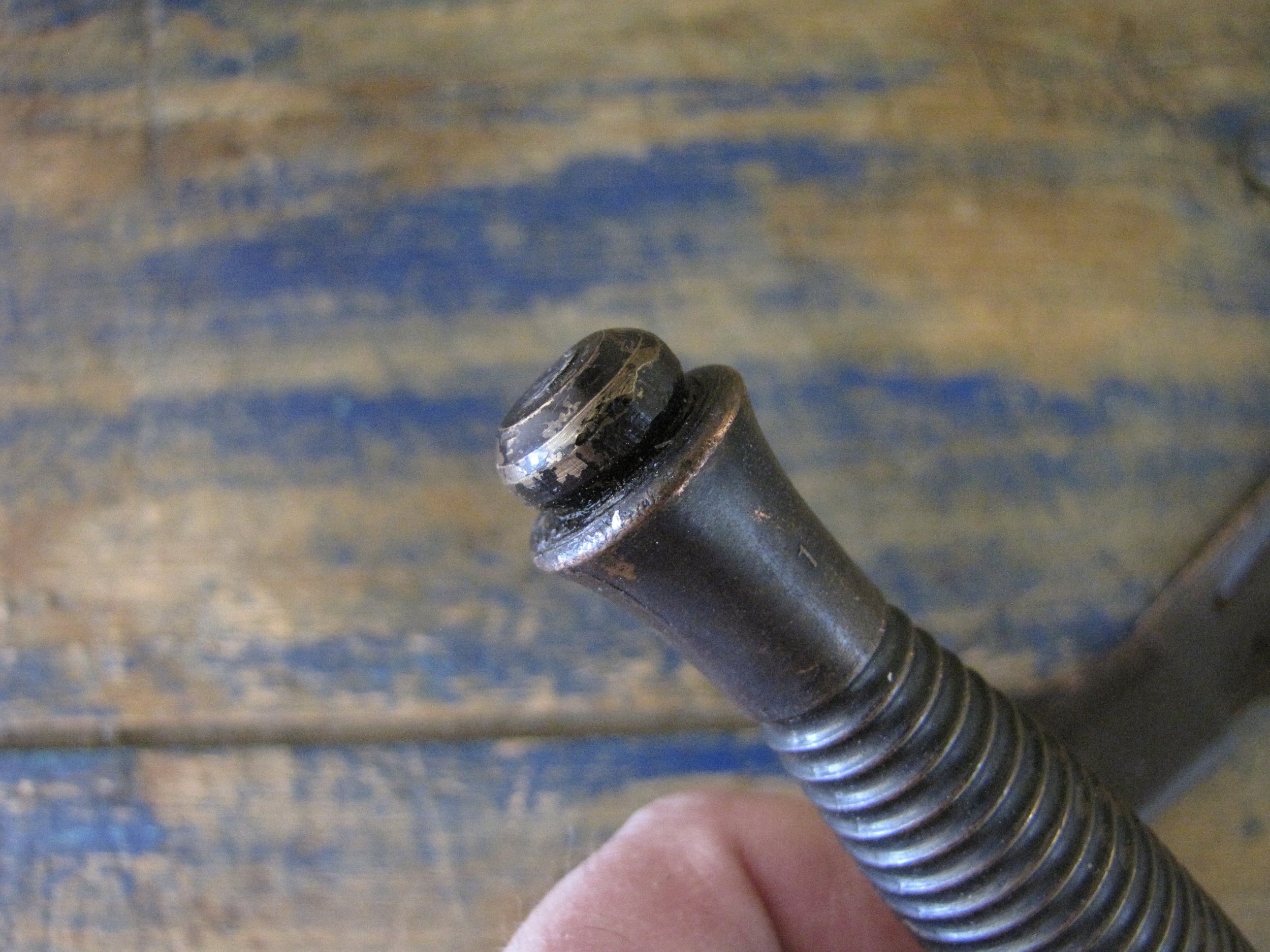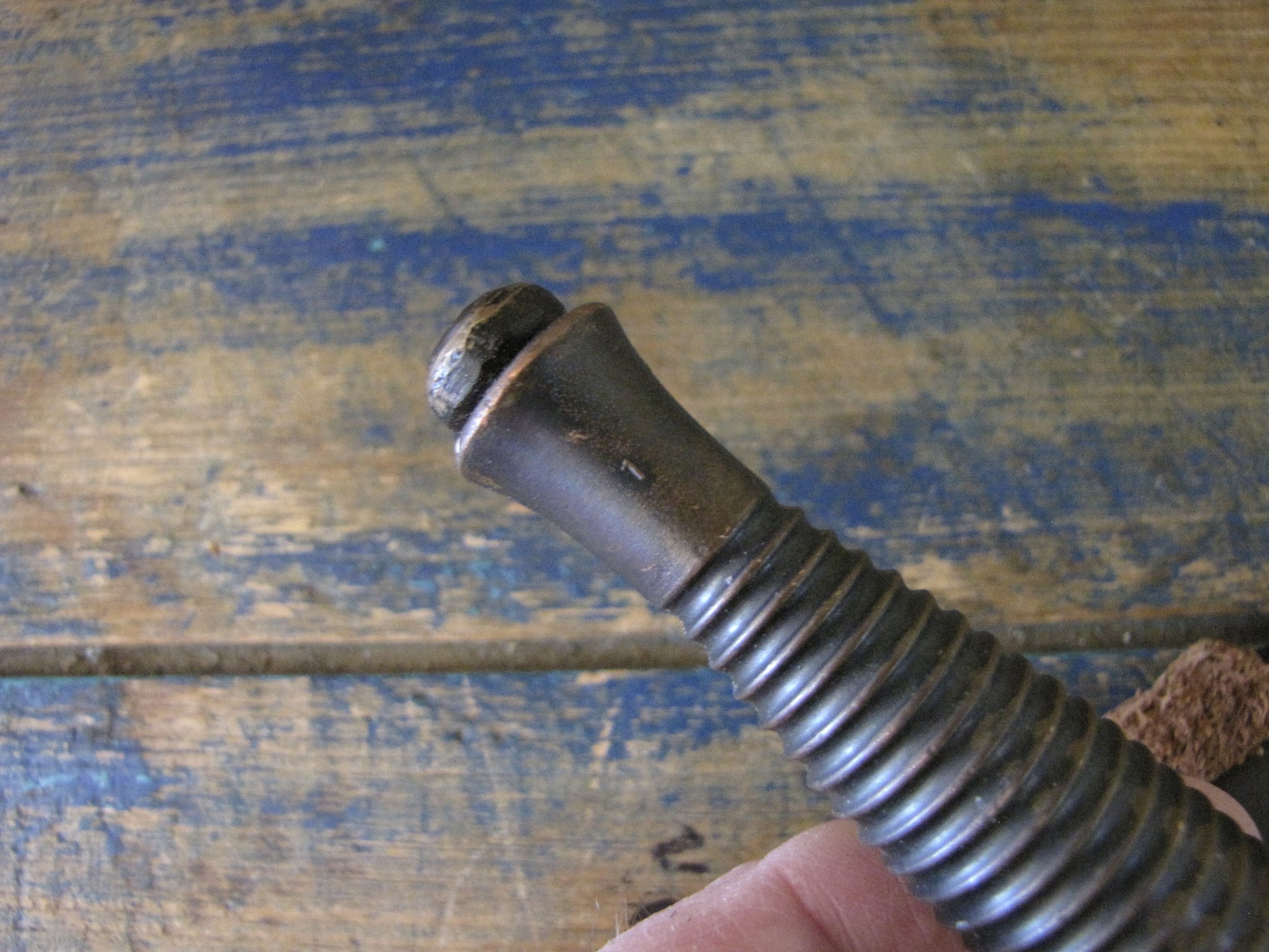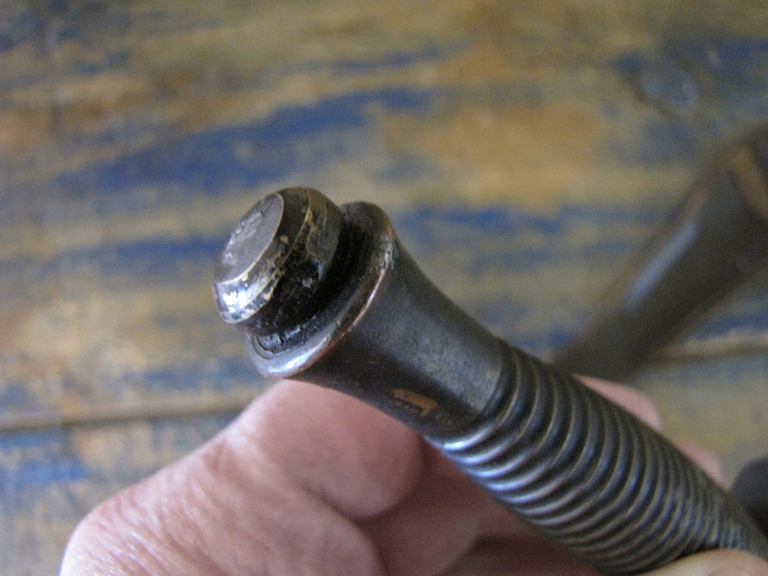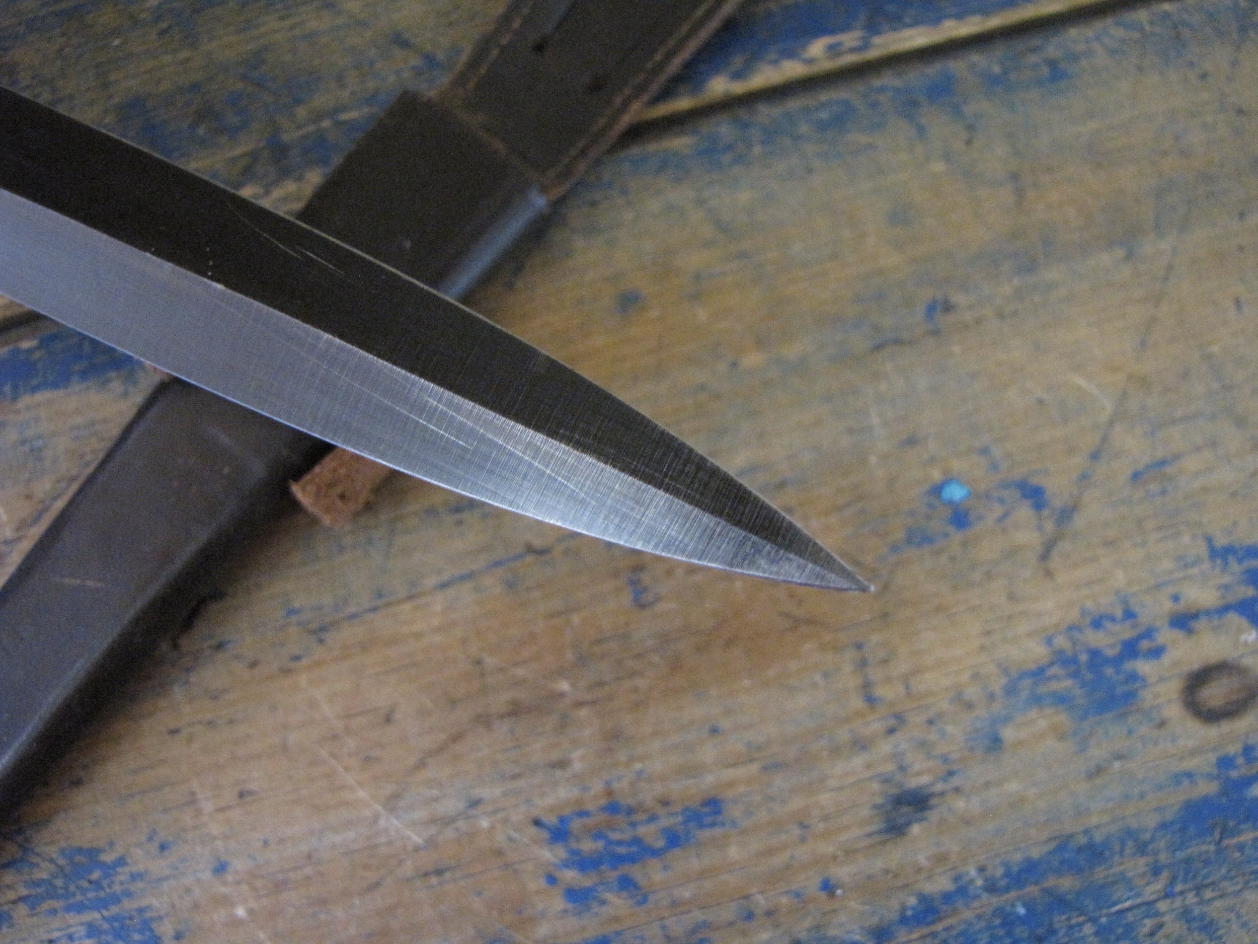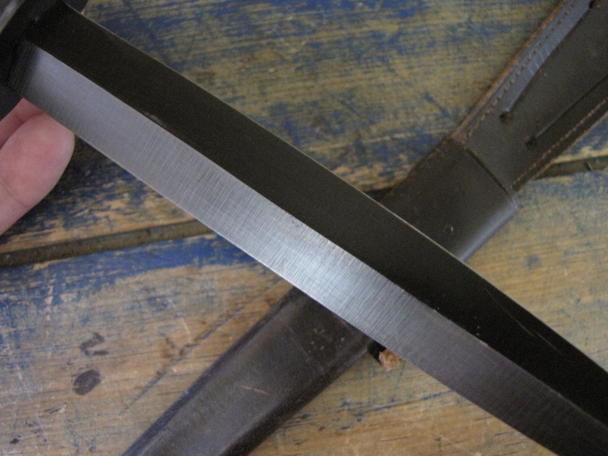 A really excellent example of the WWII production Third Pattern F-S complete with its original and correct scabbard. Retaining most of its original dark finish overall. The blade appears to be full length at 6 7/8”. The pommel nut is original and untouched. The grips cast mould number is ‘1’. The ferrule area of the grip is stamped with the seldom seen Ministry of Supply inspection/ownership code of ⩚12. Both the knife and scabbard are stamped England. The original and correct scabbard is in solid condition, one set of ‘wings’ is missing and the elastic is at fault. Overall a really fine example of this pattern, dating from 1944/5.